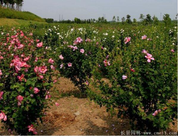 樹高最高可達6米,直徑15cm,木槿春季開花,顏色鮮艷亮麗,花謝后長芽了,葉子四季綠色,果實種像李,顏色紫紅,特別是它花朵,散發的盎然光鮮,在道路綠化中,天天都開放的生機勃勃,特別美觀大方。木槿大多采用在縣道、花壇、建筑物前當作道路綠化樹,也能孤植到操場周圍、邊沿綠地、花壇等,做為觀賞葉子種類它也可以群植成樹林。山東、泰安、成都的木槿花_木槿小苗